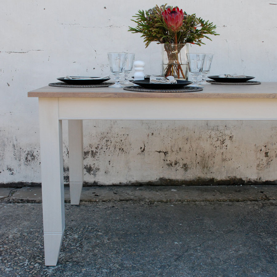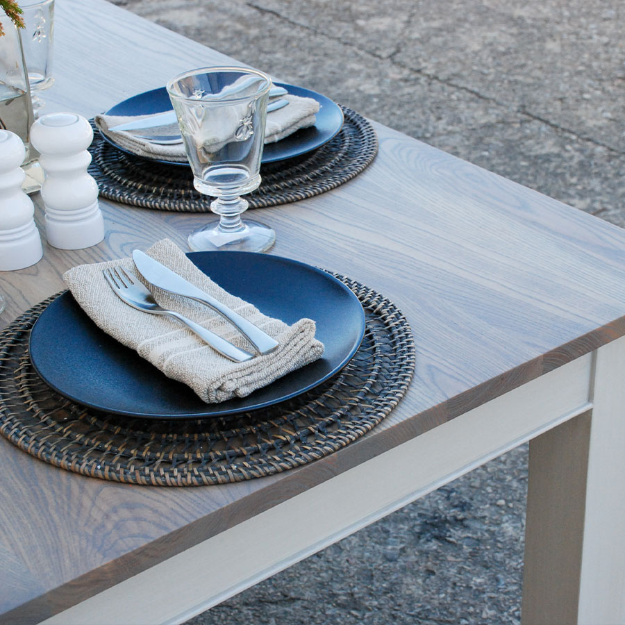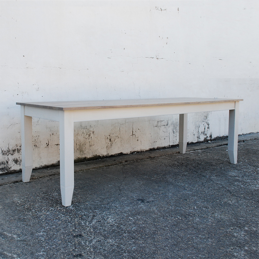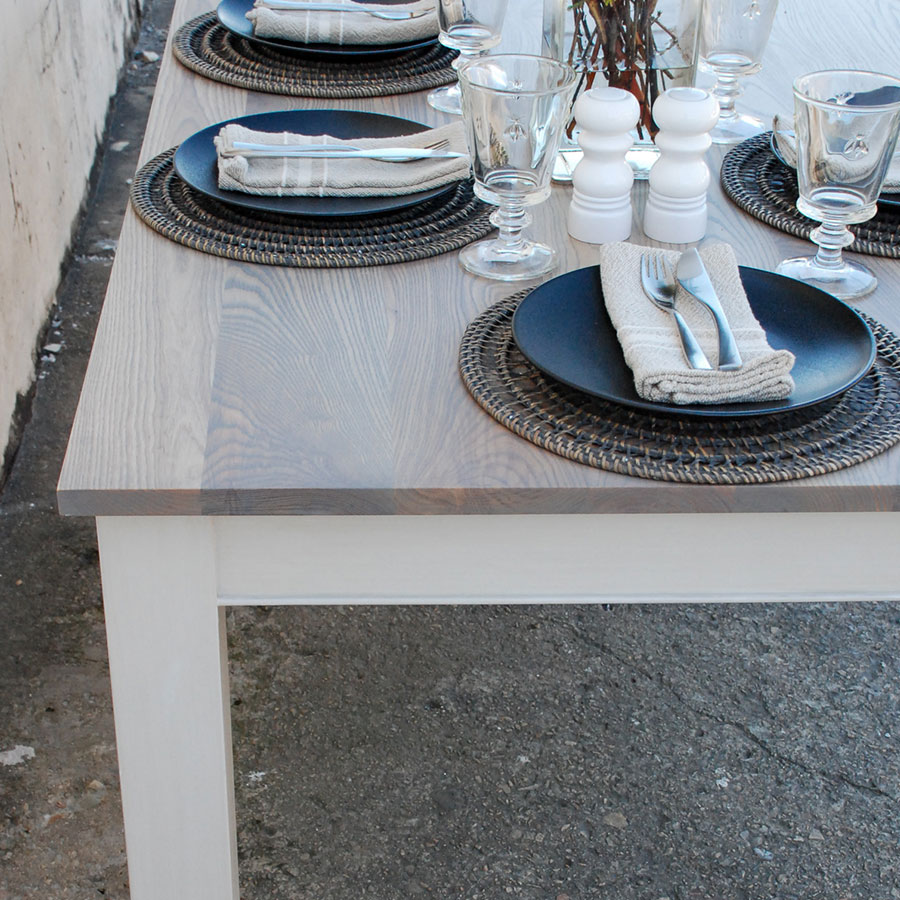 NORMANDY Dining Table (210cm x 90cm) in our Island Grey painted finish, with a range of solid wood tops.