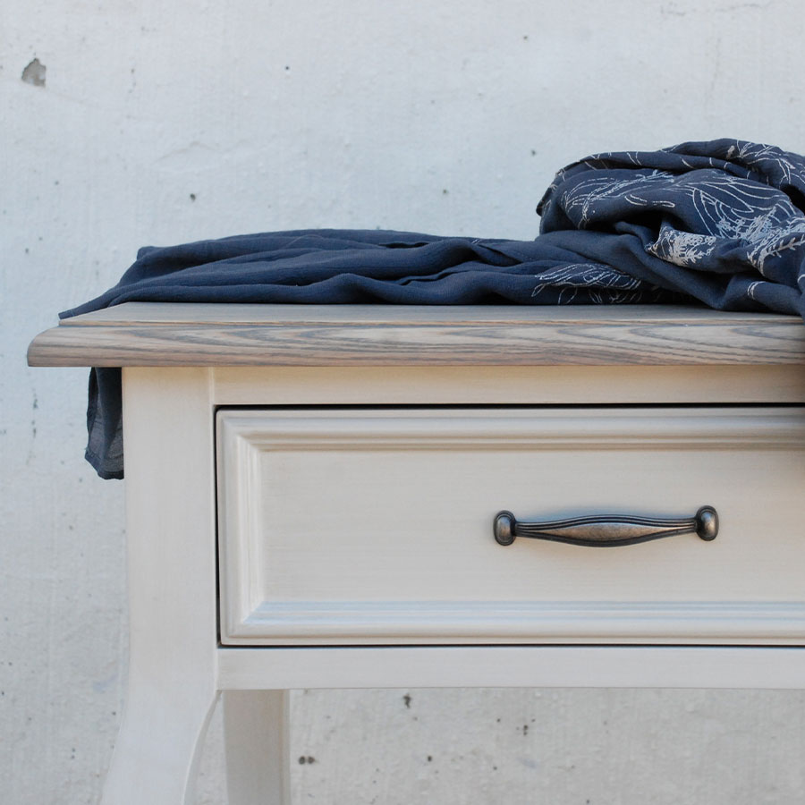 The Normandy Range boasts beautiful classic bedroom furniture crafted from clear Pine and MDF, finished in Island Grey with either a solid Oak or Ash top. The solid wood tops are finished with a tinted oil and sealed with a protective furniture wax to enhance the natural beauty of the timber.