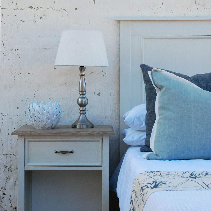 The Normandy Range boasts beautiful classic bedroom furniture crafted from clear Pine and MDF, finished in Island Grey with either a solid Oak or Ash top. The solid wood tops are finished with a tinted oil and sealed with a protective furniture wax to enhance the natural beauty of the timber.