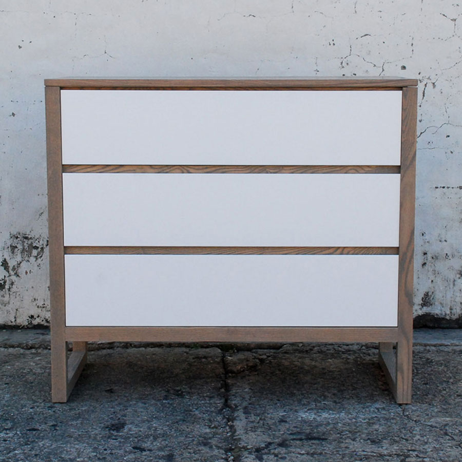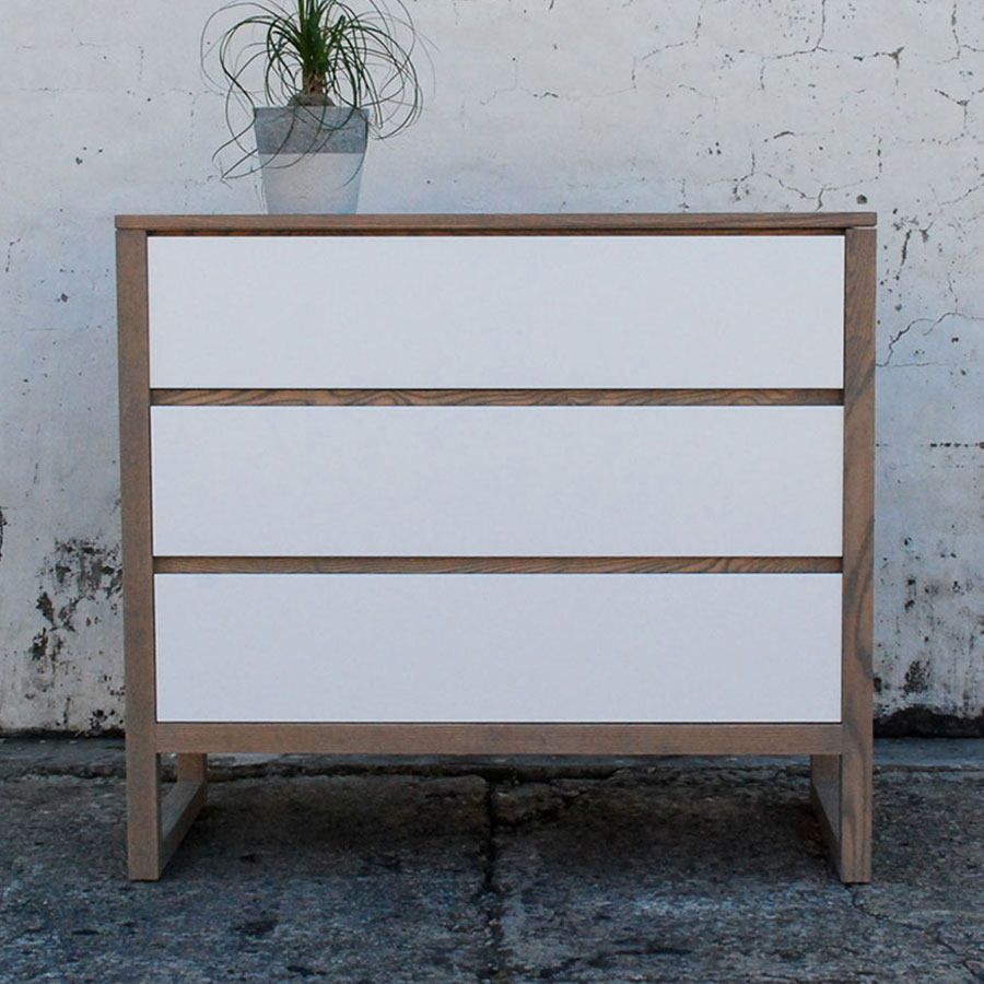 OSLO Chest (3 Drawer) crafted from Solid Ash in a “Havanna” finish with sleek Solid White drawer fronts.